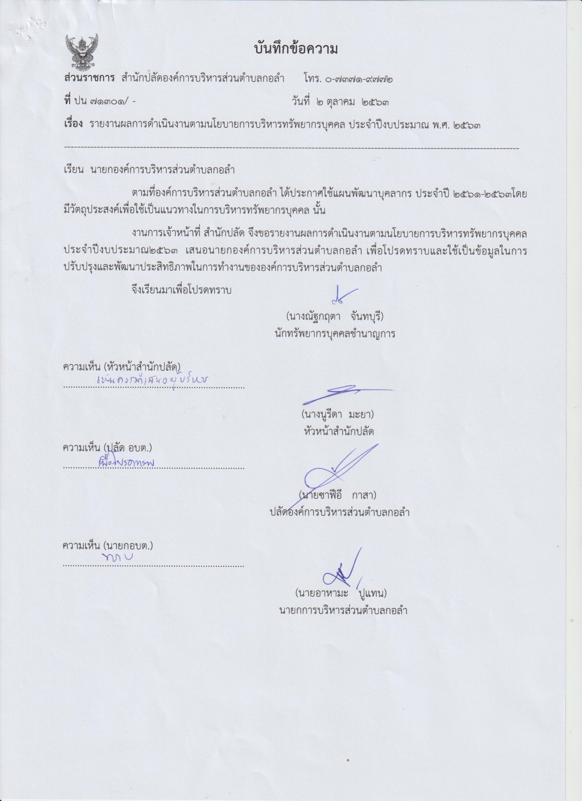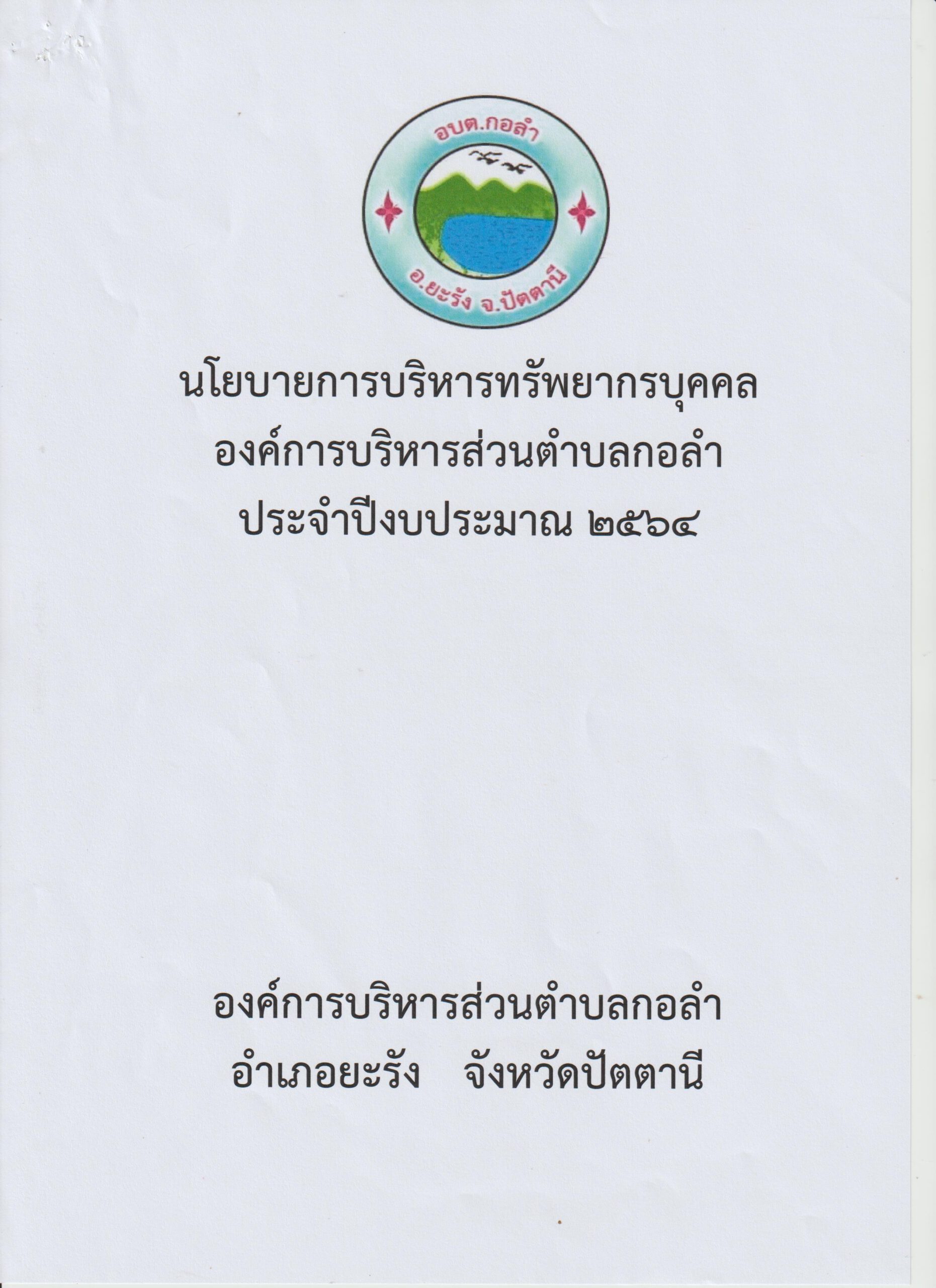 นโยบายการบริหารทรัพยากรบุคคล องค์การบริหารส่วนตำบลกอลำ ประจำปีงบประมาณ 2565